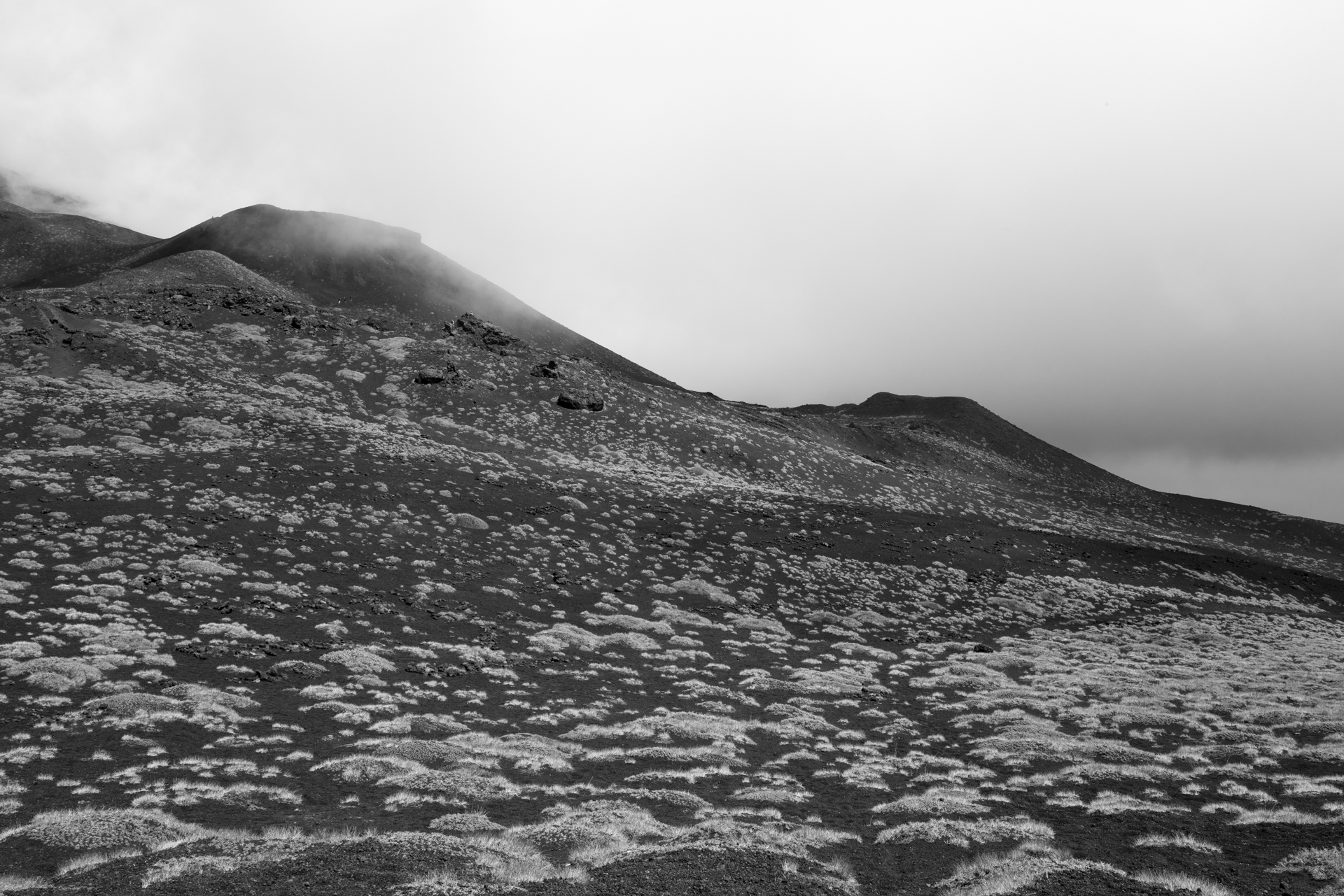 È color nero, aridità, disidratatezza. Quando il vulcano tace le sue fiammanti scenografie, tutto tace, tutto è silenzio.